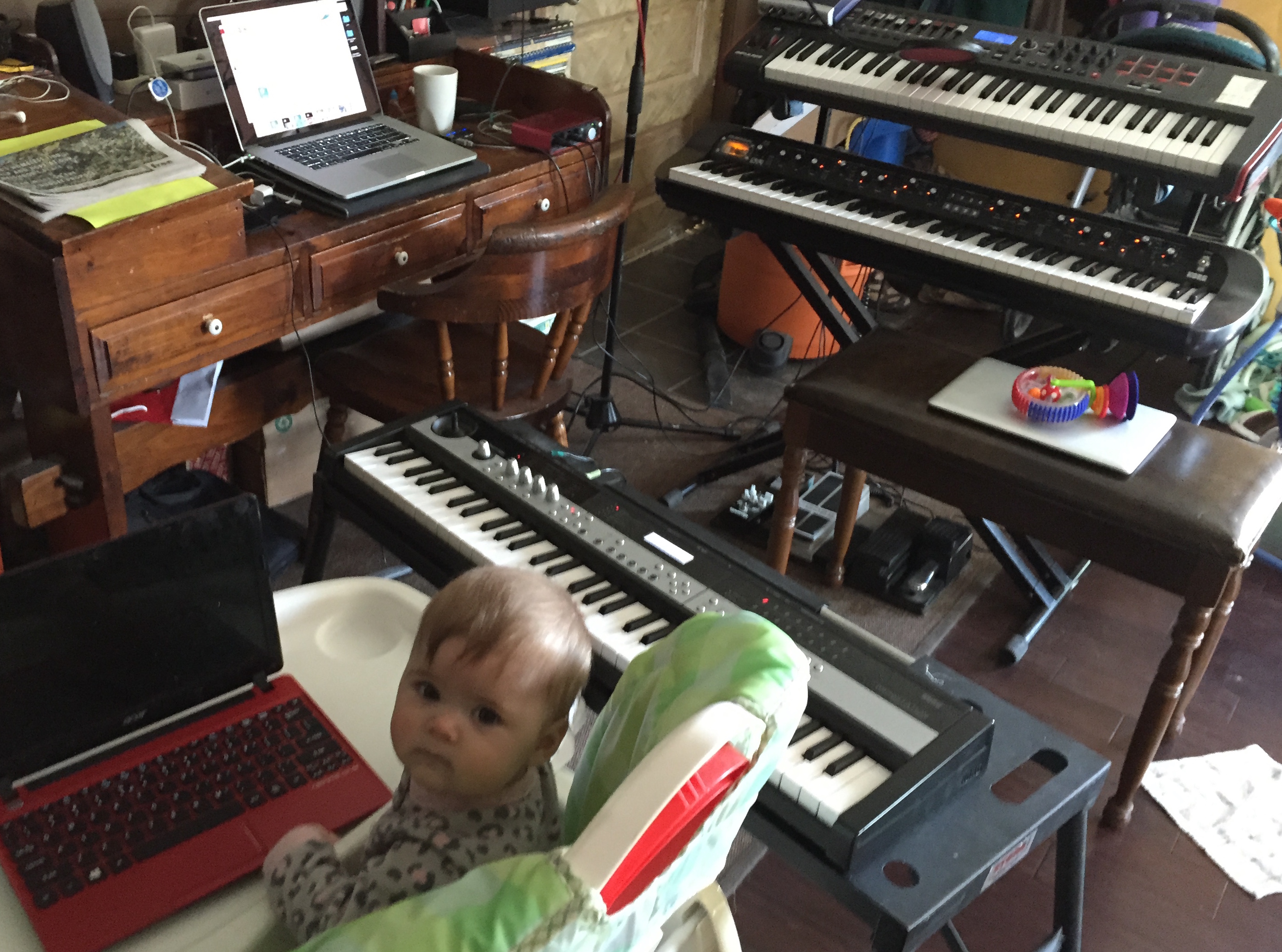 This is the coolest keyboard I have ever owned. I was missing my arranger keyboards of the past, and my brother made this happen for me. He set me up with his friends who were looking for a web designer. They generously traded a website for this Yamaha. I had the most fun playing it, using for recording, writing songs with it. It was very inspiring. I downloaded thousands of styles online for this thing, and created a few styles of my own. I could put a microphone through this to get the reverb I was looking for when I recorded a part. It had guitar amp modelling and effects, so I could record my guitar through this into the computer. I had built in three part harmony for audio signals. It was a performing machine, and made me so much better a musician for having it. I left it on at church for an entire week and came back and it was not working. The repair shop told me that it would be around $900 for a new motherboard, something I couldn’t afford at the time. I had to say no. It was a sad day.